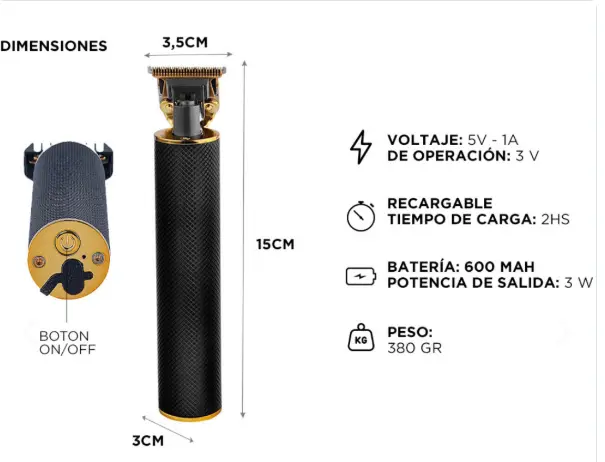 Incluye peines guía de 1 mm, 2 mm y 3 mm, permitiendo crear distintos estilos con facilidad. Su diseño compacto y liviano asegura un manejo cómodo y resultados de nivel profesional en cada uso.