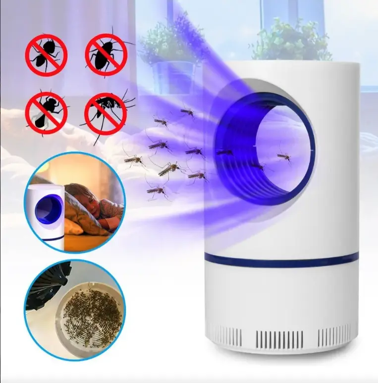 Mata Insectos UV Silencioso Eliminá mosquitos y otros insectos de forma eficaz y sin químicos. Su luz UV los atrae mientras funciona de manera totalmente silenciosa. Con conexión USB y diseño compacto, es ideal para usar en cualquier ambiente del hogar. Protección continua, práctica y segura las 24 horas.